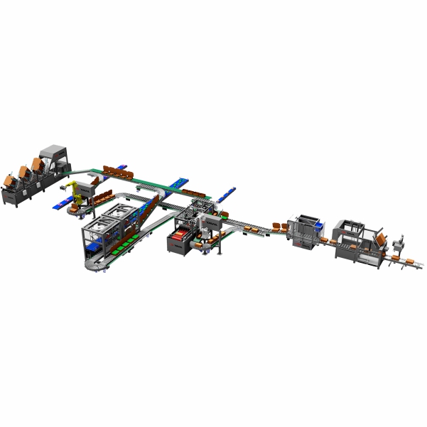 Configuración multilínea y modular capaz de trabajar simultáneamente con diferentes productos y cajas.