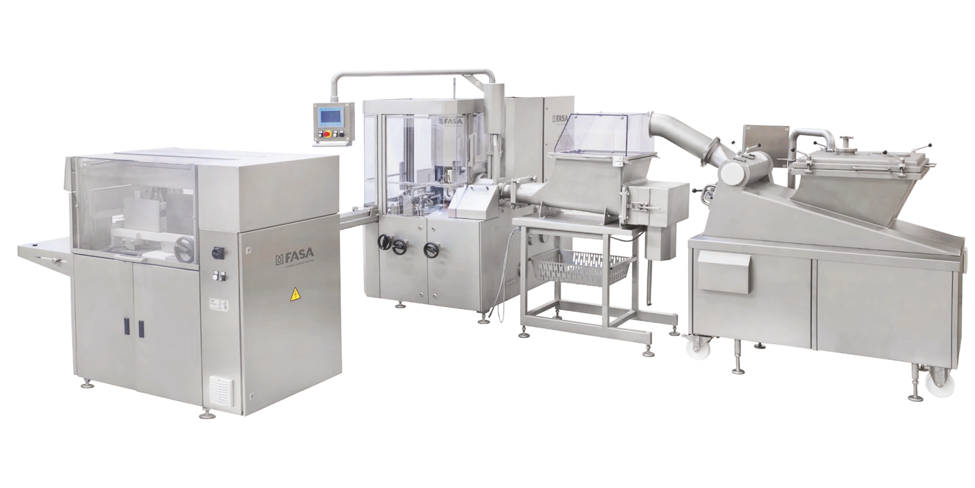 Diseñada para transformar bloques de mantequilla de 10 a 25 kg en porciones aptas para la distribución al consumidor. Antes de envolverlo, el bloque de mantequilla se ha de cortar y homogeneizar. Esta función es necesaria para recuperar las propiedades de la mantequilla tal y como eran antes de la congelación. Cuando la mantequilla está homogeneizada, vuelve a estar lista para ser rellenada y envuelta en forma de bloques. Las porciones de mantequilla envueltas se agrupan según lo deseado (número de capas, número de filas y porciones en una fila) y el bloque de porciones se introduce en la caja de cartón preparada.