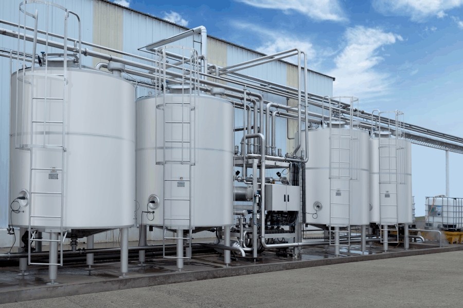 Set de válvulas de operación automática: Conjunto de vávulas de accionamiento neumático con control de posición, comandadas por PLC para direccionamiento de los fluidos según programa de limpieza elegido.