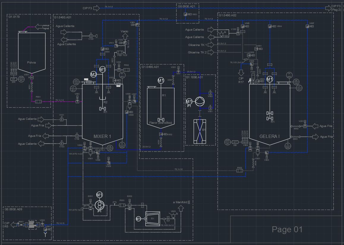 Planos e isométricos de produto e tubulação CIP