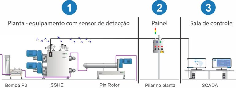 Equipamento integrado ao SCADA da planta, permitindo monitoramento contínuo e alarmes de alerta